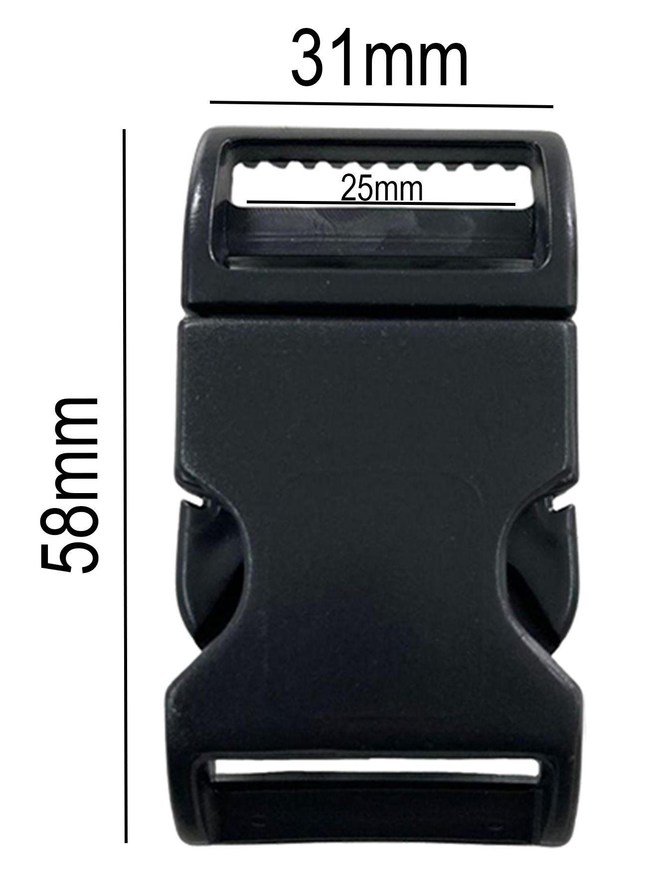 - Tamanho INTERNO DO PASSADOR DA FITA: 25mm na parte do passador, serve para fitas de 25mm